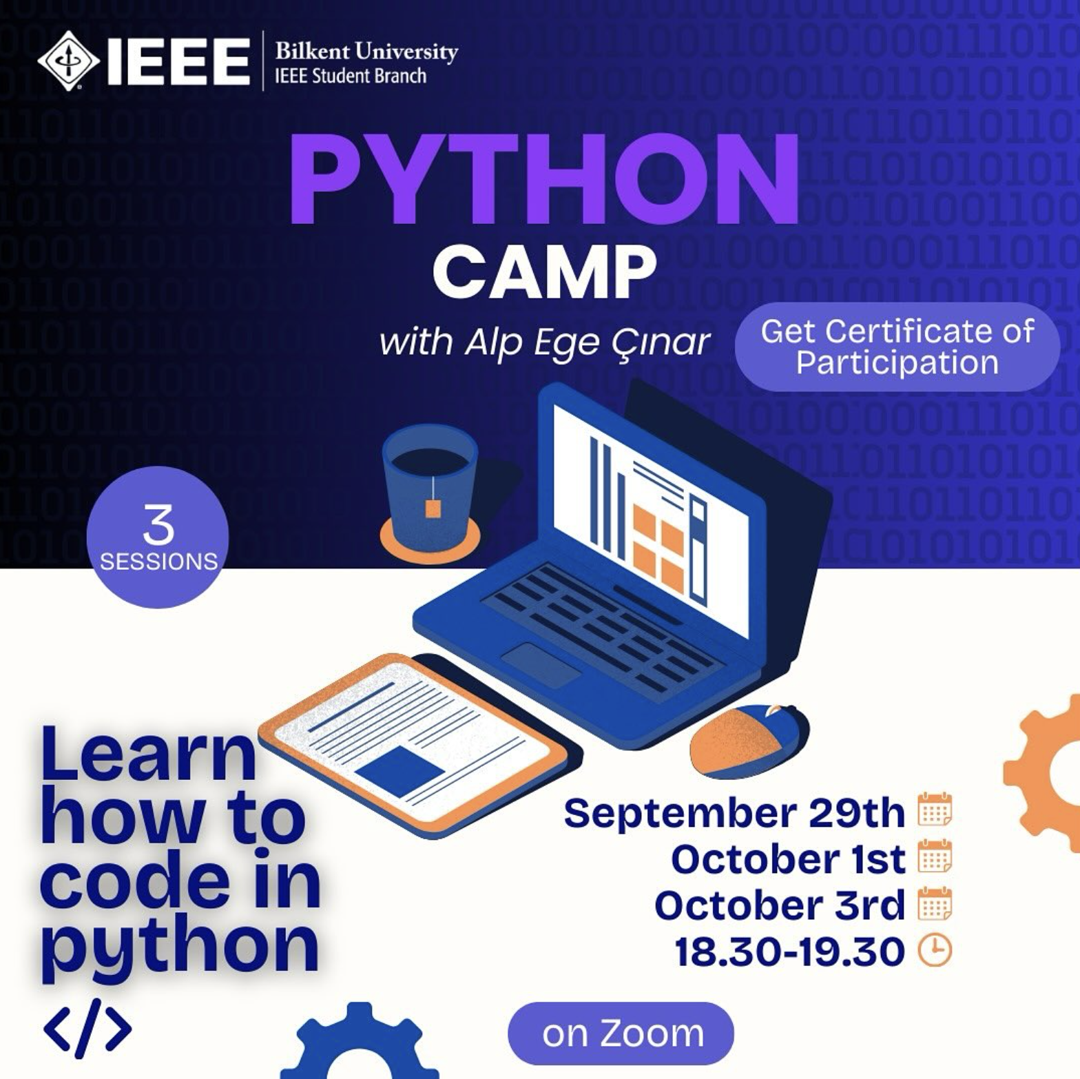 The IEEE Student Branch at Bilkent University hosted a Python Camp led by Alp Ege Çınar, introducing participants to the basics of Python programming. Through three interactive sessions, students gained hands-on experience and built a strong foundation in coding.